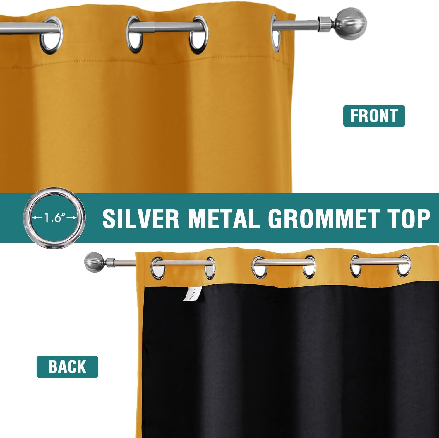 ChrisDowa 100% Blackout Curtains for Bedroom with Black Liner, 2 Thick Layers Total Blackout Thermal Insulated Grommet Window Curtains 2 Panels Set (Mustard Yellow, 52 x 72 Inch)
