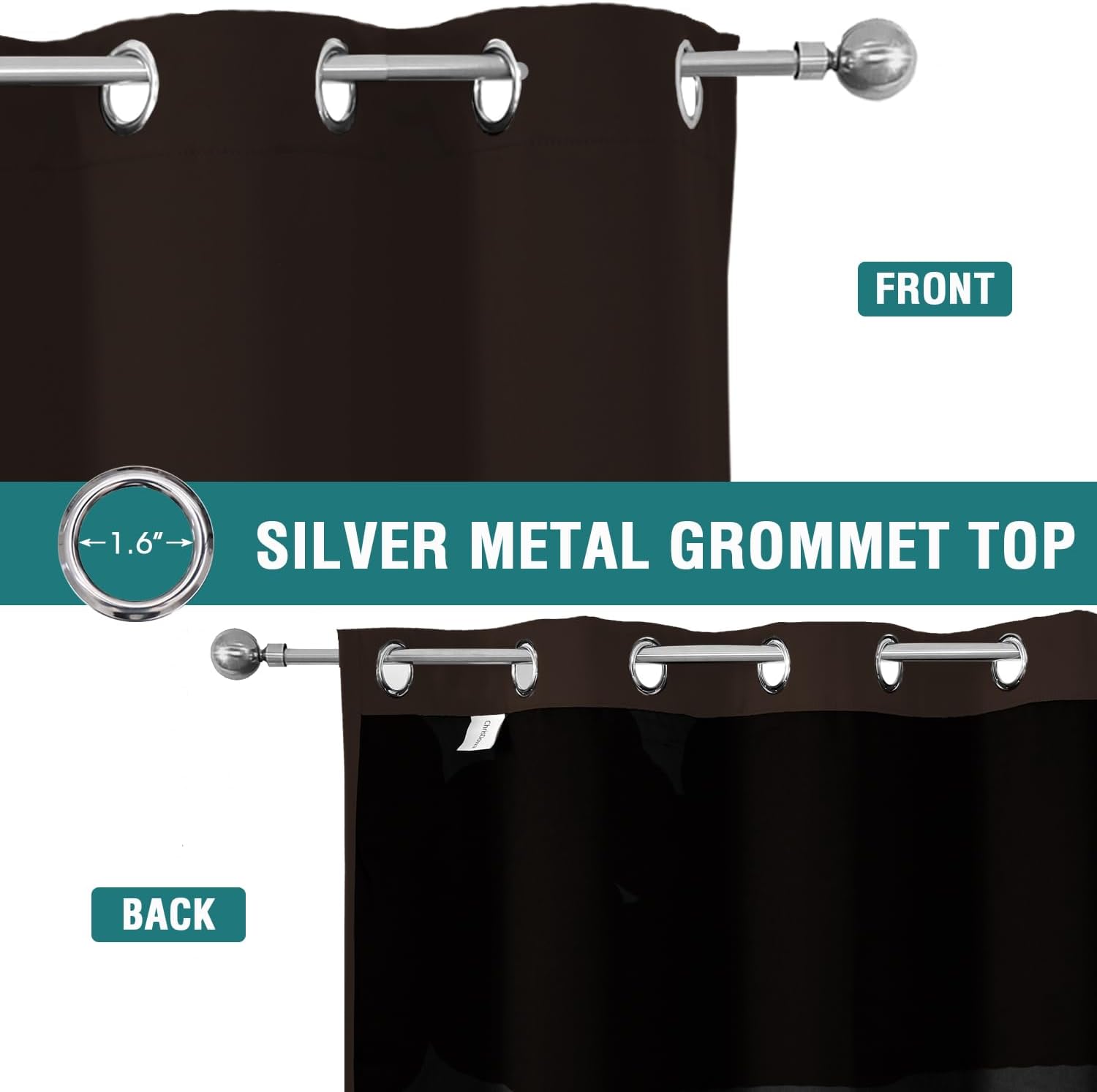 ChrisDowa 100% Blackout Curtains for Bedroom with Black Liner, 2 Thick Layers Total Blackout Thermal Insulated Grommet Window Curtains 2 Panels Set (Brown, 52 x 84 Inch)