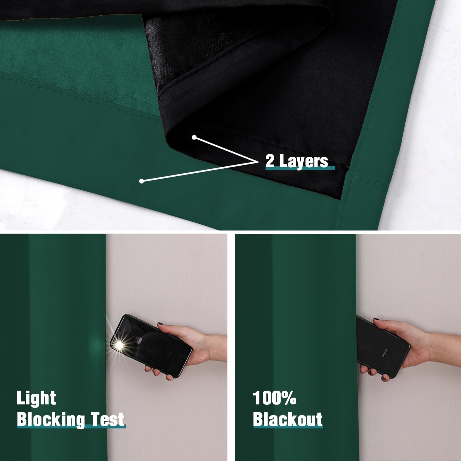 ChrisDowa 100% Blackout Curtains for Bedroom with Black Liner, 2 Thick Layers Total Blackout Thermal Insulated Grommet Window Curtains 2 Panels Set (Forest Green, 42 x 63 Inch)
