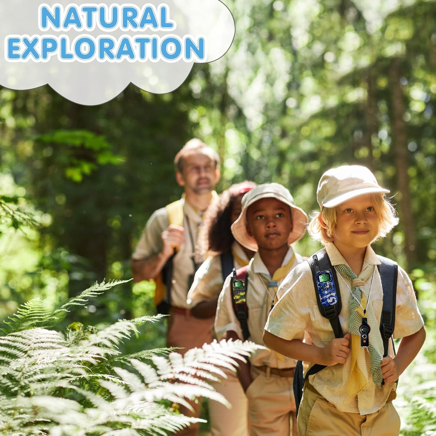 - STRENGTHEN FAMILY BONDS: These walkie talkies for kids help parents find a fun way to talk to kids in games. Equipped with 2 multi-whistles with emergency whistle, compass, LED signaling light, magnifier and reflector for good playability. These are super cool electronic toys for boys aged 5+, making them a popular toys for family bonding time