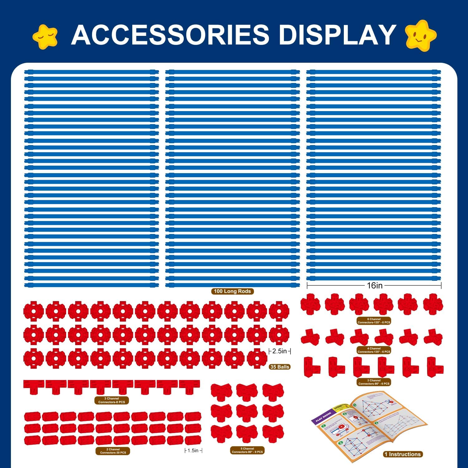 - Creative connect system-Easy to build, easy to disassemble,Won't Fall Apart.Each Creative Fort building kit comes with 35 magic balls, 100 long rods and 65 extend connectors,200 Pcs totally,rich enough to create more structures. Simply insert the rods into the balls, builder connects in a few seconds. Best of all, it's light but sturdy, supports sheets well. A handy step-by-step guide shows you how to build.