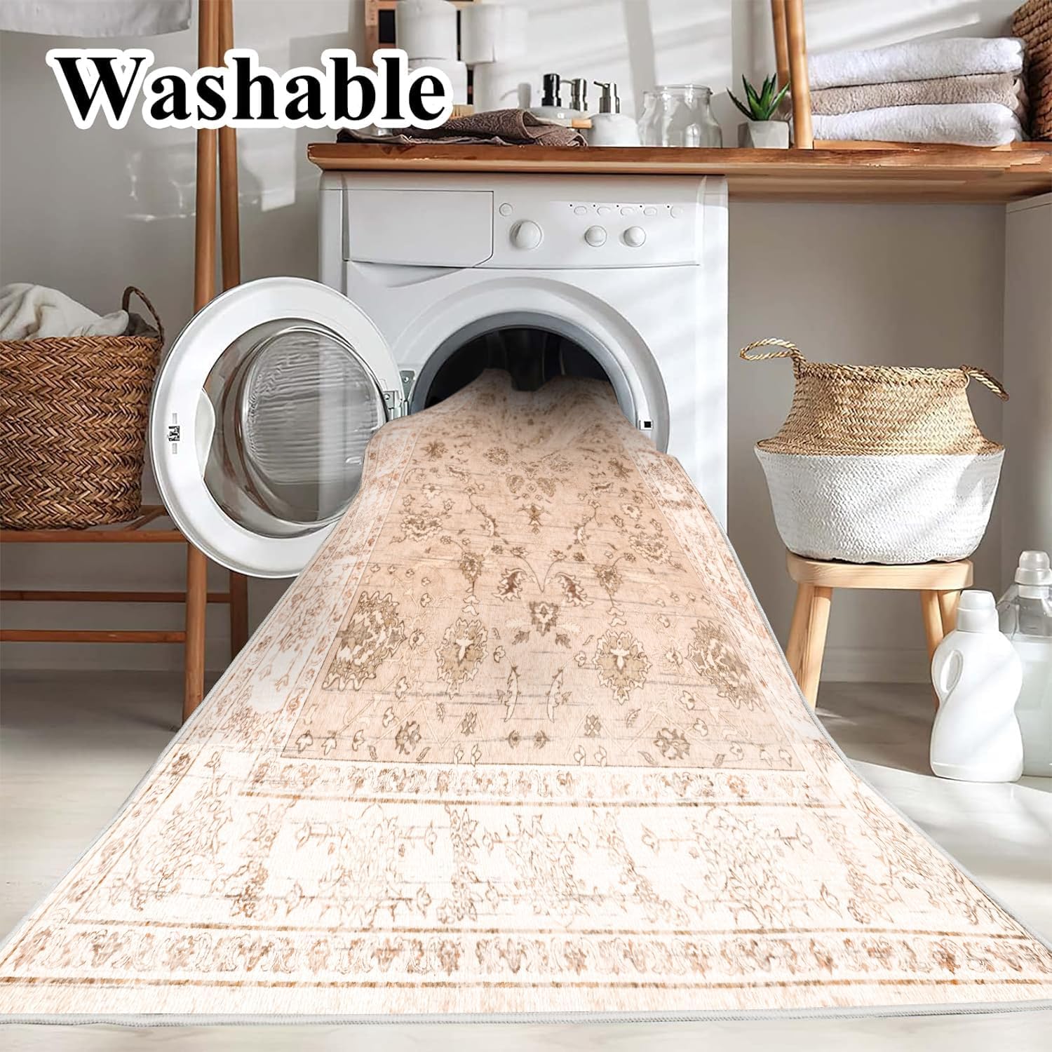 5x7 Washable Foldable Thin Area Rug Tangerine Vintage Rug Traditional Floor Cover Retro Indoor Distressed Non Slip Carpet Floral Print Bedroom Living Room Bathroom Mat