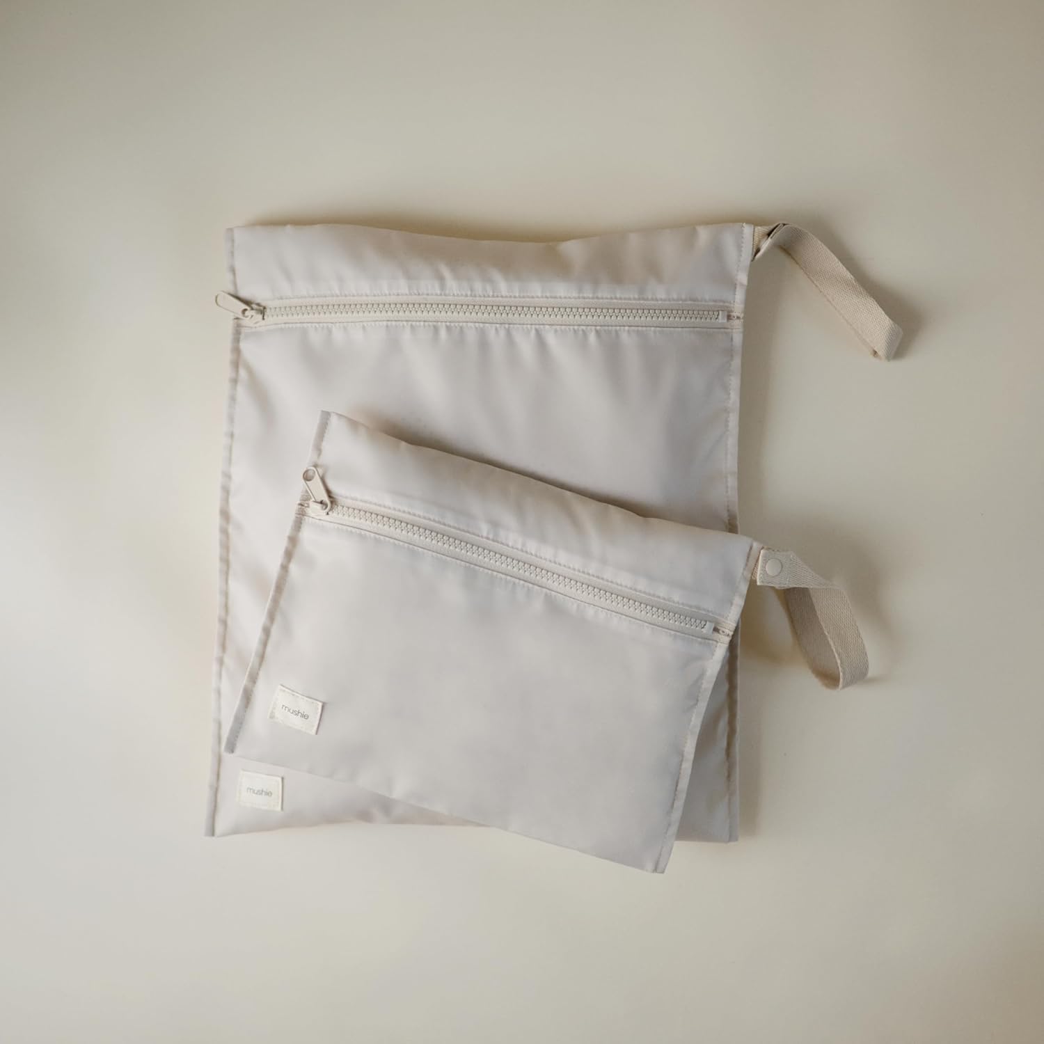 mushie Water Resistant Wet Bags | Large & Small Reusable Storage Bag for Baby Items and Travel | Zippered Pockets with Handle | Machine Washable, Set of 2 (Fog)