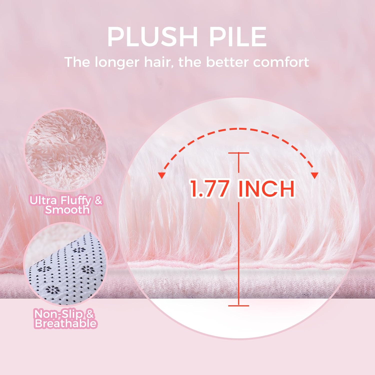 Ultra Soft Rug for Living Room, 5X8 Fluffy Shag Area Rug for Bedroom, Modern Shaggy Carpets Fuzzy Rug for Teens Dorm Nursery Home Decor Aesthetic, Upgrade Anti-Skid Durable, Pink