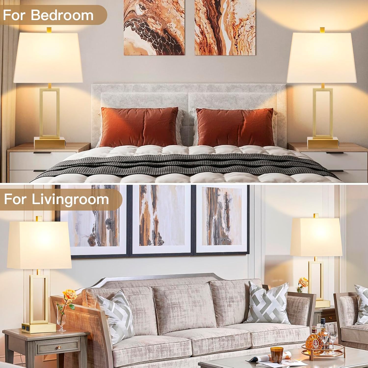 - 【USB A+C Charge Ports and AC Outlet】This bedroom lamps set of 2 are equipped with USB & TYPE-C Charging Ports and 120V AC power outlet, allowing you quickly to charge 3 devices at the same time, such as smart phones, tablet, kindle, laptop, humidifier, and other electric devices. Whether the lamps is turned on or off, you can conveniently charge various electronic devices without searching for an extra socket and charge your phone at night with lamp for living room lamps