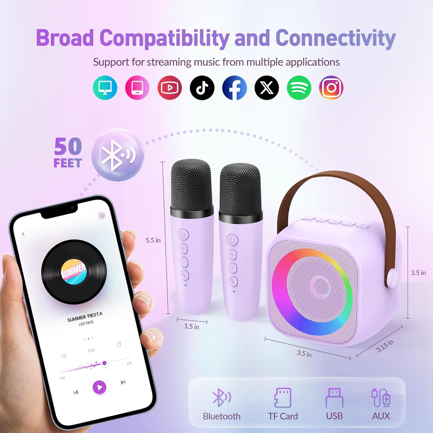 - Auto-Connected 2 Microphones: Turn on the karaoke machine, 2 wireless microphones will be automatically connected, making the operation easier. Stable Bluetooth technology ensures easy connection to your phone or pad, supports various apps, it also supports TF-card and U-disk reading, multiple ways for you to enjoy the fun
