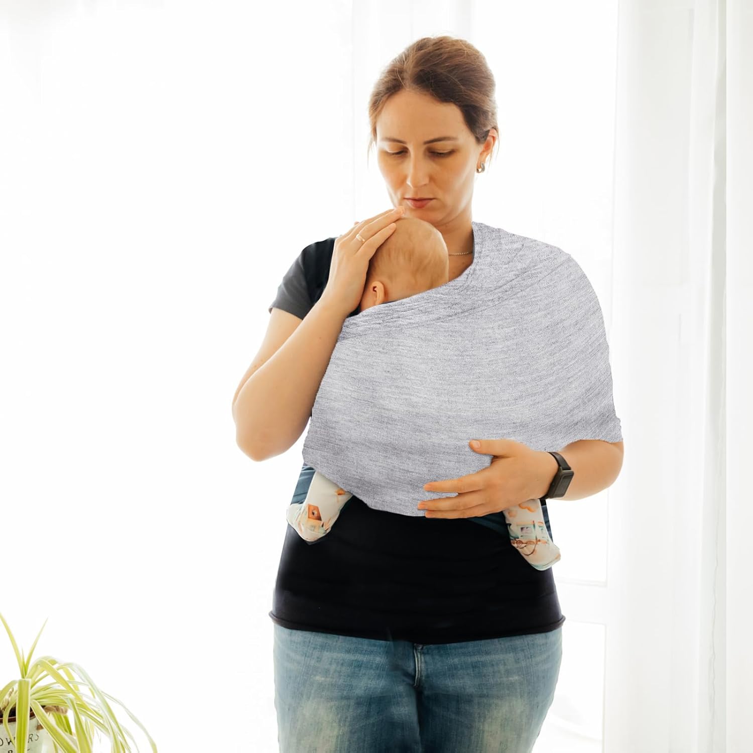 - 【Hands-Free & Easy Use】Our carrier is in a simple design without complicated straps or buckles for easy use. Parents can gentle hold the little one in the chest, an environment similar to the womb, which gives them a greater sense of security. Likewise, it also helps them sleep better. By this way, this baby wrap carrier lets you move, shop, and work freely.