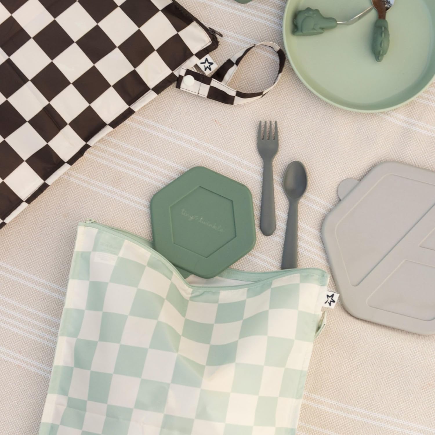- PREMIUM SAFETY & SUSTAINABILITY:Tiny Twinkle prioritizes safety with OEKO-TEX Standard 100 certified fabric made from 100% recycled plastic—free from PVC, phthalates, PFAS, and hidden toxins. Safely store baby bottles, portable changing pad,snacks, multiple bibs or sensitive items in this wet swimsuit bag waterproof or wet bathing suit bag waterproof, while supporting eco-conscious parenting through reusable, Eco-friendly design.