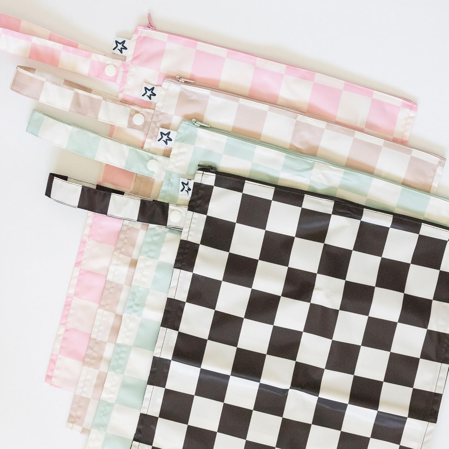 Tiny Twinkle Mess-Proof Waterproof Wet Dry Bag | 2-Pack Reusable Wet Bags for Swimsuits & Baby Clothes | Leakproof Wet Bag for Travel & Diaper Changes for Baby (Unisex Checkers)