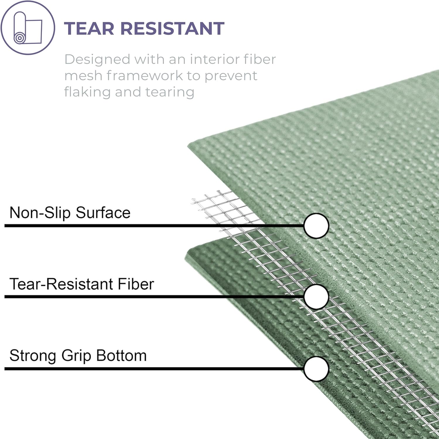 - Non-Slip: The fitness mat features a textured surface for stability and balance when changing or maintaining poses; created with an interior fiber mesh layer to reduce mat stretch and resist tears for longevity