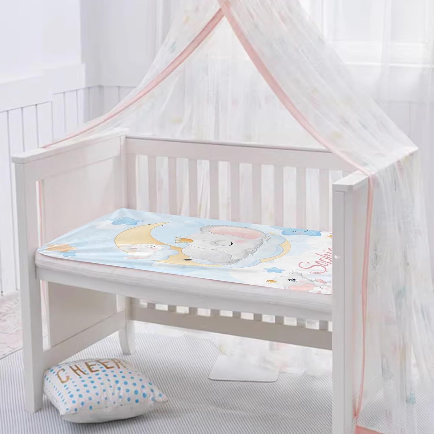Personalized Baby Blanket with Name, Custom Elephant Name Blankets Toddler Girls Soft Flannne Swaddling Blankets Azure Color Customized Memorial Gift from Nana for Infant Newborn Shower