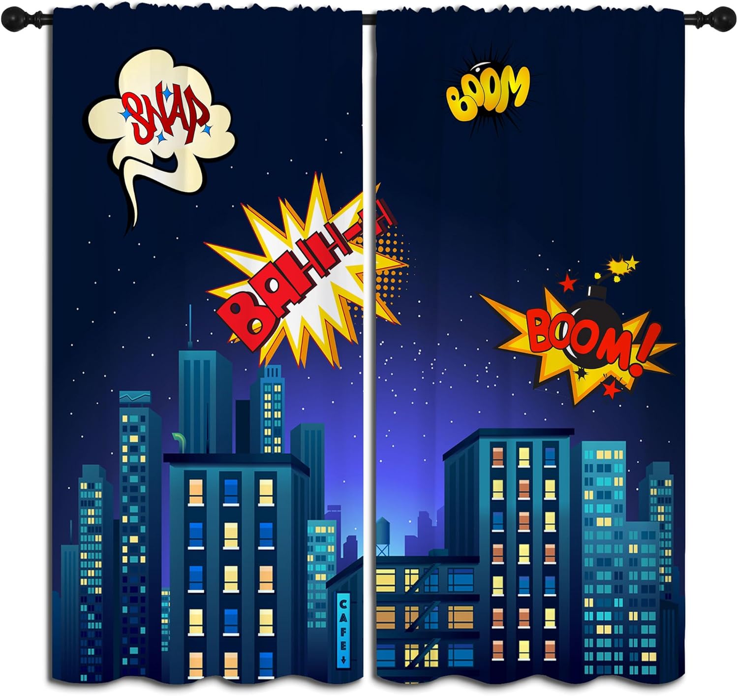 - ✿【Fashion Design】: Elevate your room decor with these Superhero theme printed decorative curtains featuring Cartoon Skyline Buildings Cityscape Design. They're for any room.