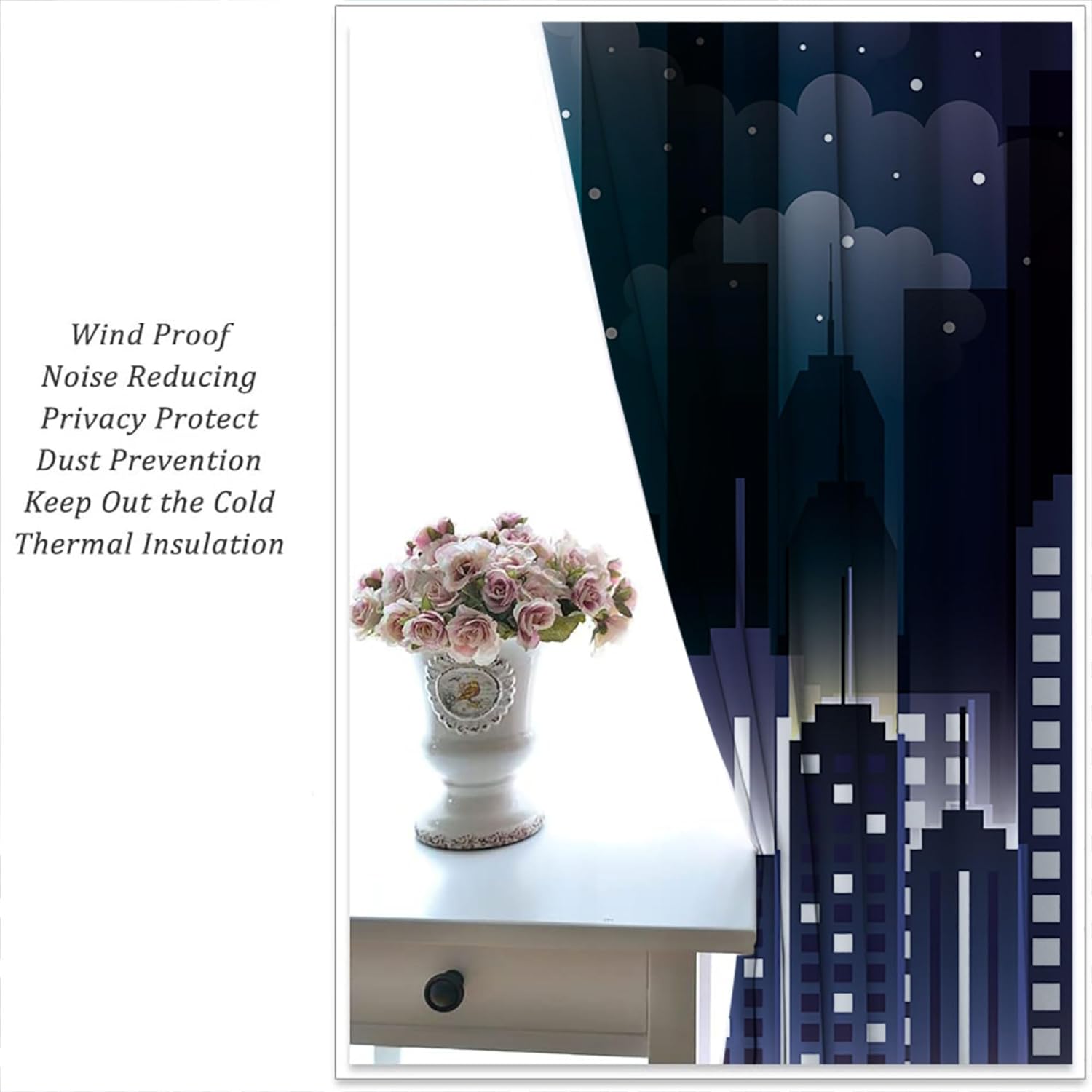 - ✿【Fashion Design】: Elevate your room decor with these Superhero theme printed decorative curtains featuring Violet Night Sky Buildings Cityscape Design. They're for any room.