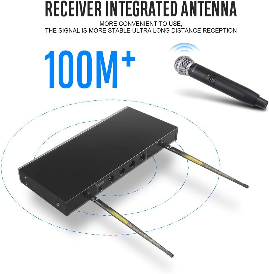 - Reliability: The 4-channel UHF wireless microphone receiver has 4 receiving antennas to improve the received signal. The high-quality test adopts anti-noise and anti-interference technology, which can remove the distortion. Sound and sound quality up to 300 feet.