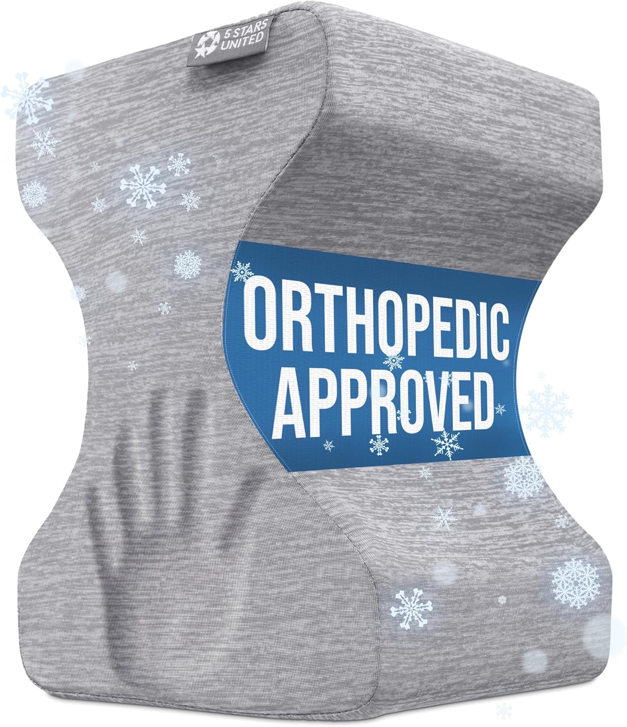 5 STARS UNITED Knee Pillow for Side Sleepers - Hip Pain Relief - Cooling Cover - Memory Foam Leg Cushion for Side Sleeping - Between Legs Pillow for Sciatica & Lower Back Pain, Arctic Gray