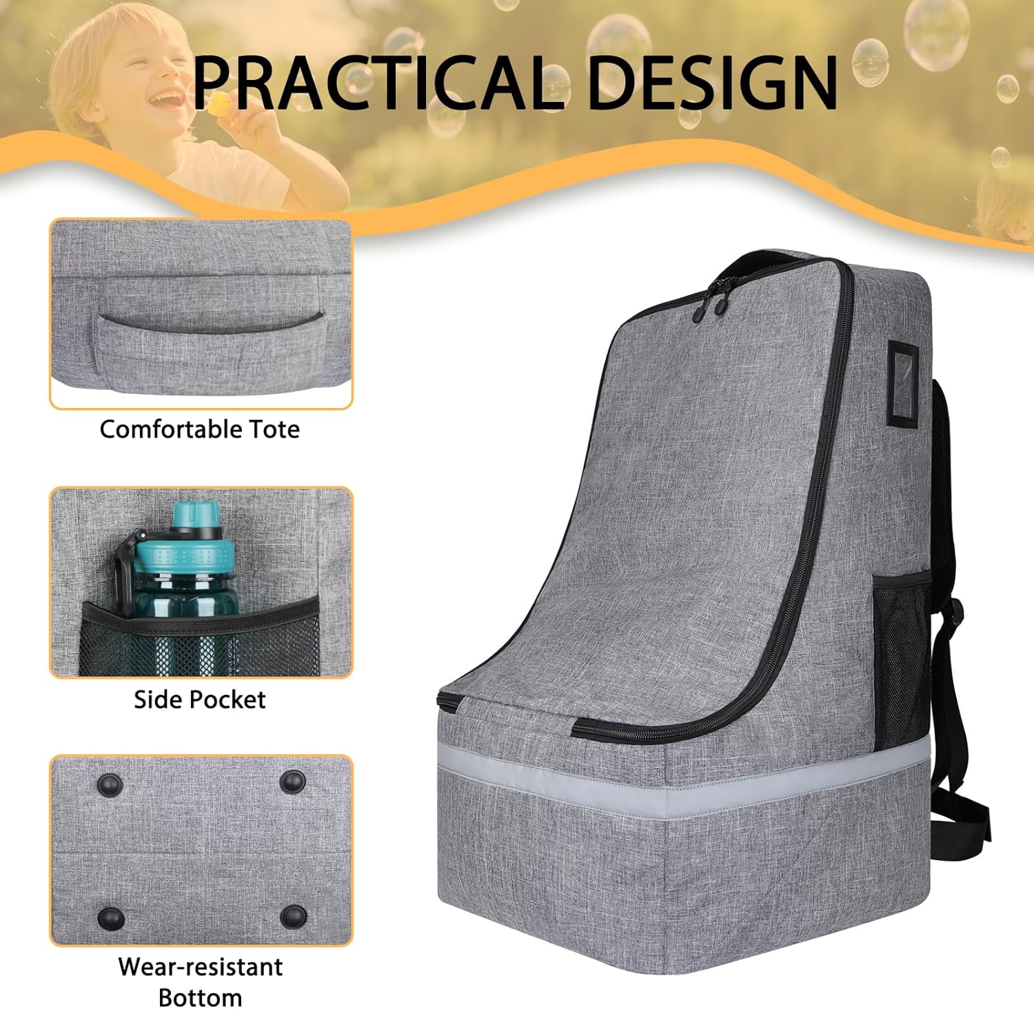 Car Seat Travel Bag for Airplane,Infant Seat Travel Bag with Shoulder Strap,Padded Car Seats Backpack with Reflective Stripes,Large Carseat Carrier Bag Travel Car Seat Cover,Grey