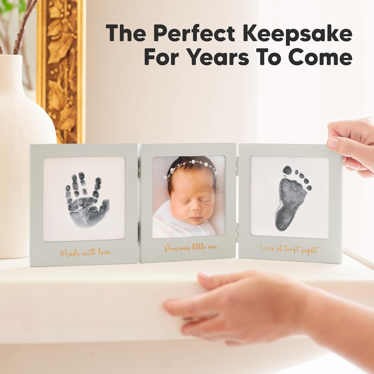 - Superior Quality - Our Fond Baby Keepsake Photo Frame features a tri-fold wood frame and a 100% real glass cover, ensuring a premium look and lasting durability. Its contemporary design perfectly complements any modern nursery decor.