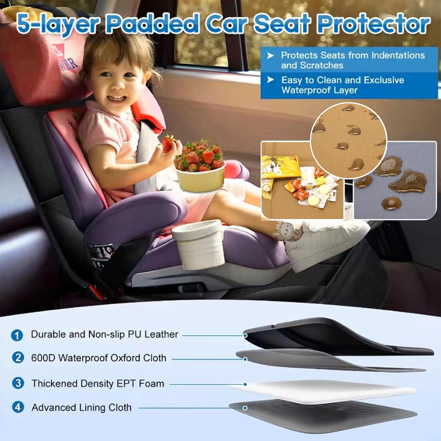 - Car seat protector covers for baby carseat made of waterproof durable 600D polyester with thick padding. Baby car seat cover can protects the back seat of the car from wear and tear of the child seat, make us comfortable while traveling