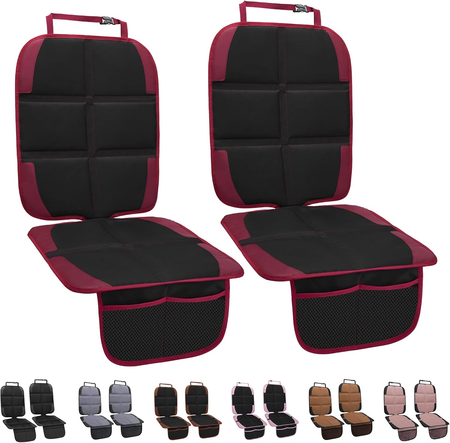 Car Seat Protector for Child, 2 Pack With Mesh Pockets & Non-Slip Backing 600D Durable Under Baby Seat Cover for Back Seat (Burgundy, Standard)
