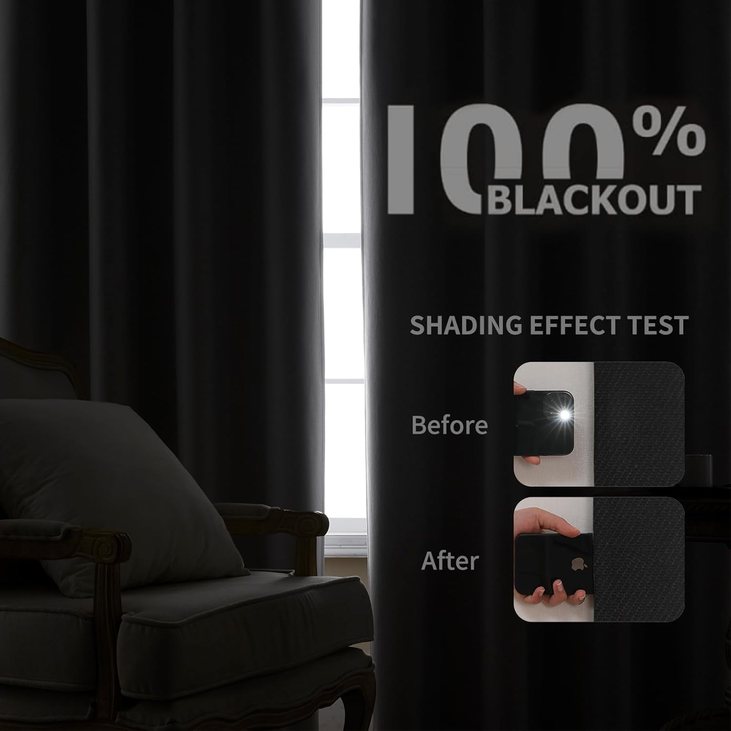 Joydeco 100% Blackout Curtains 90 Inches Long 2 Panels Set, Thermal Insulated Long Curtains& Drapes 2 Burg, Room Darkening Drapes for Bedroom Living Room Window (Black, W52 x L90 Inch)