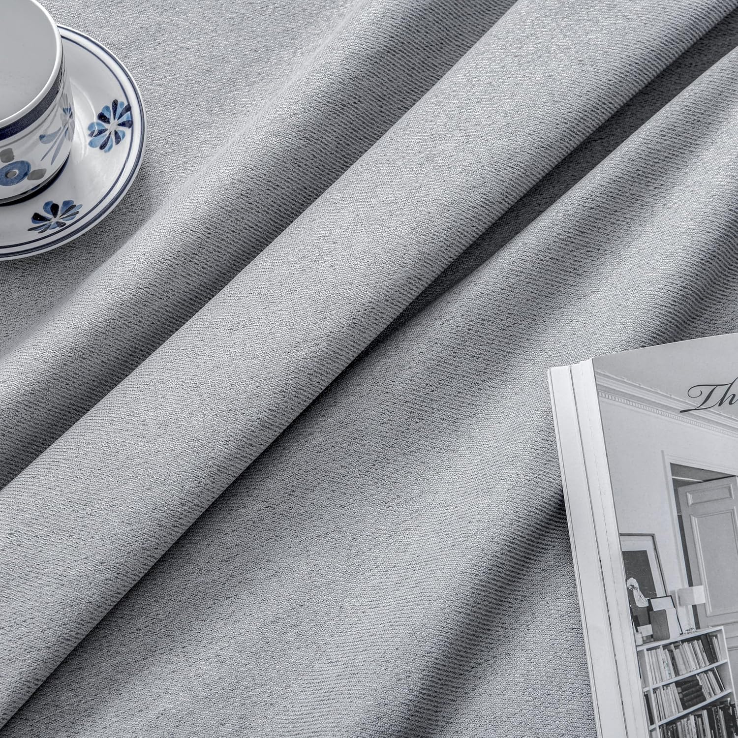 Joydeco Faux Linen Blackout Curtains for Bedroom,Light Grey Blackout Curtains 96 inches Long,100% Blackout Sound Proof Thermal Insulated Window Drapes Luxury Decor(W52xL96 Inch,Light Grey)