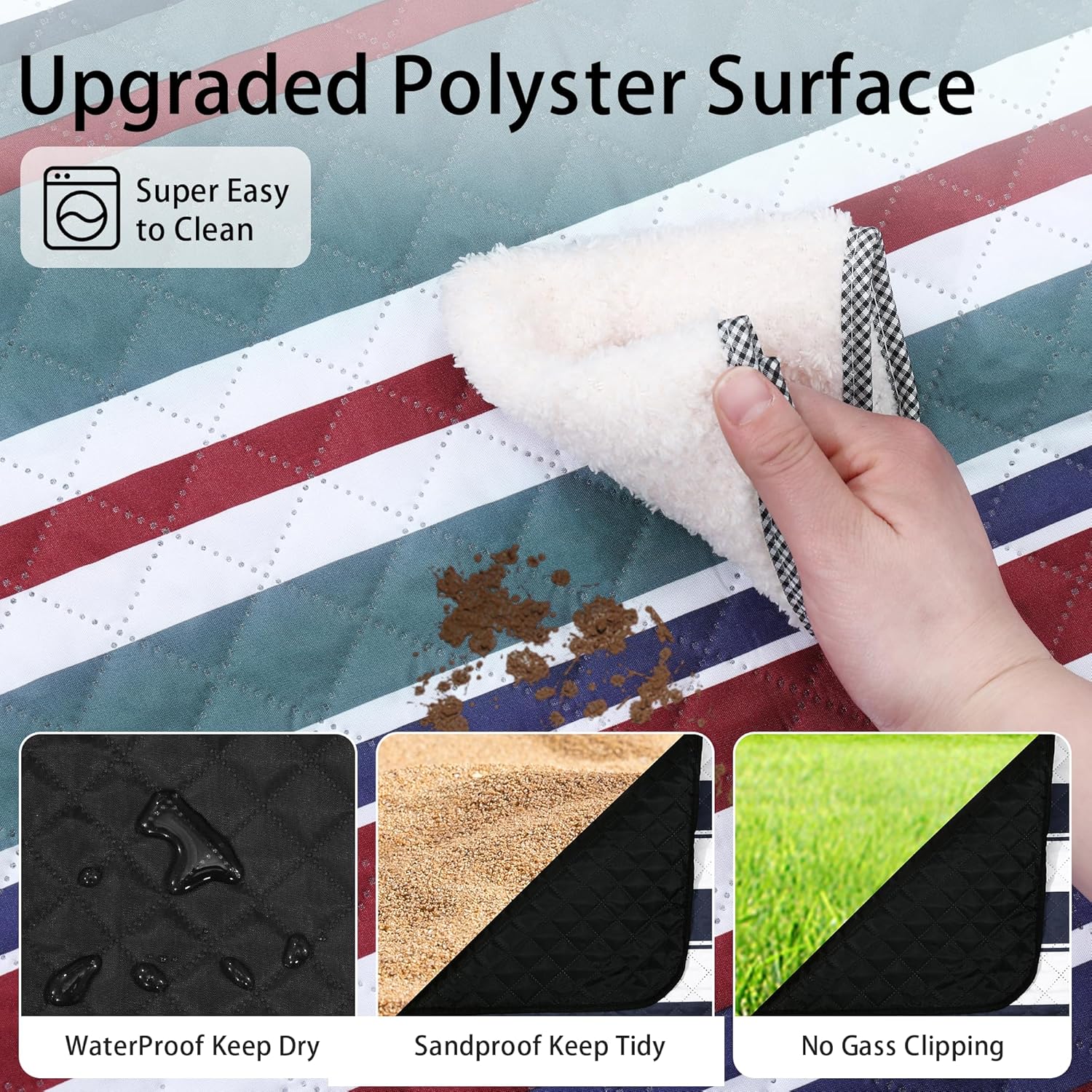- 【Waterproof & Machine Washable】Outdoor picnic blanket is super easy to clean due to its durable and waterproof backing, easily shake & wipe off dirt, mud, wet grass, and beach sand. And you could put it into washing machine to save your time and free both hands.