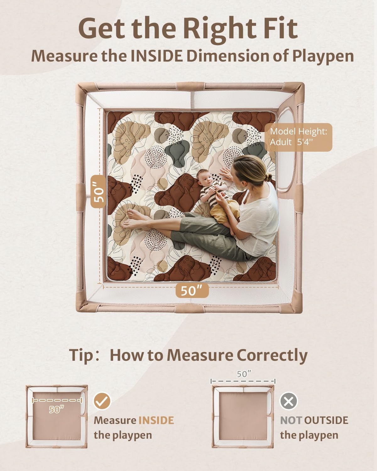 - Perfect Fit & Versatile Use – Measuring 50×50 inches, this mat fits playpens with the same INSIDE dimensions. Also great for tents or indoor/outdoor play. Please measure your space or playpen for a proper fit. More sizes available for your need