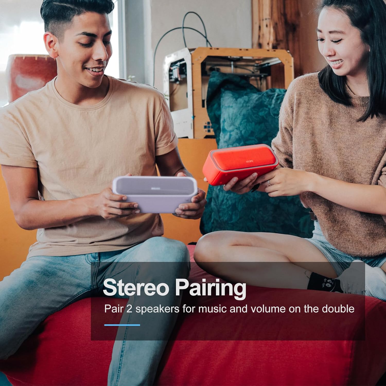 - Wireless Stereo Pairing: Bring a bolder sound together for a bigger party. Connect two SoundBox Pro wireless speakers via a single device for immersive stereo sound and double the volume.