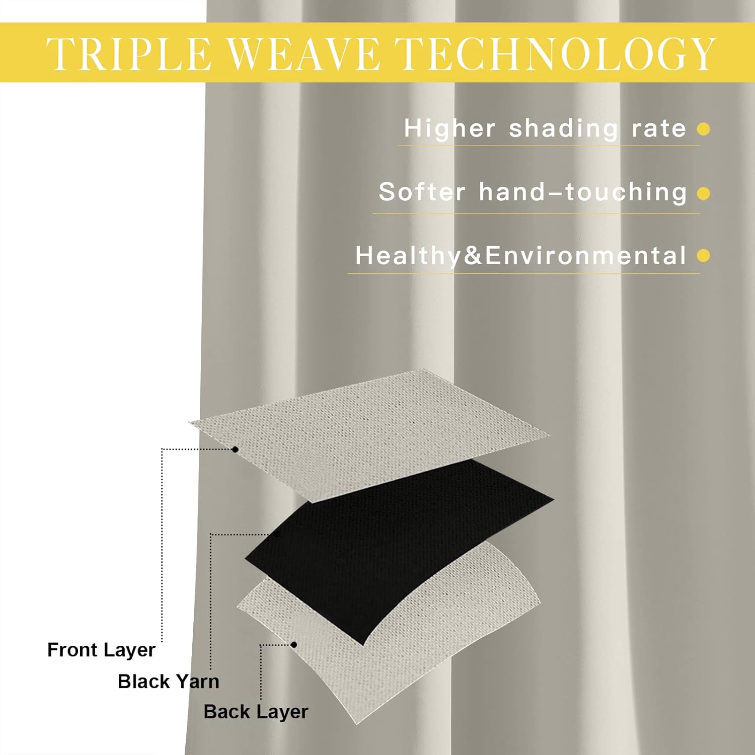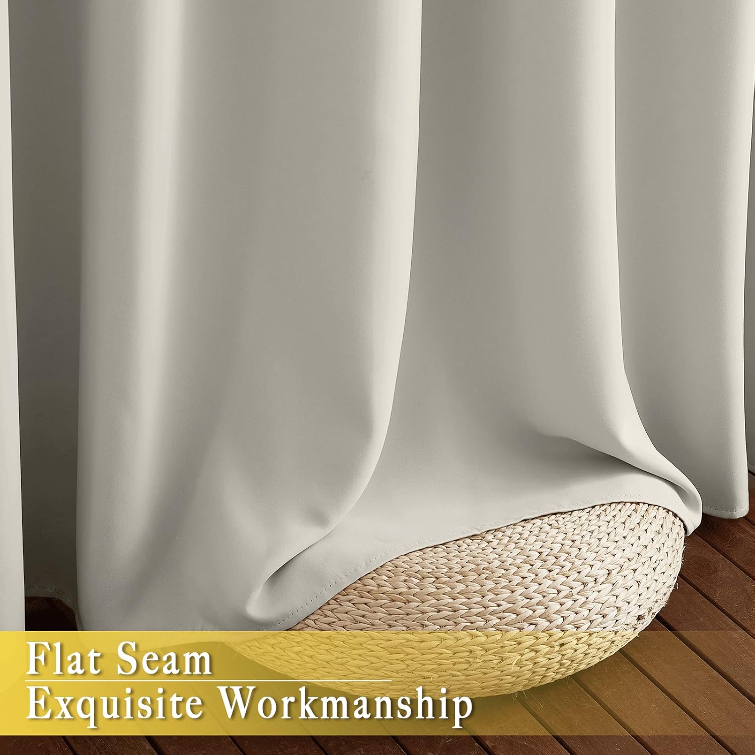- Amazing Material: Super heavy and soft Blackout Curtain Panels are very upmarket. Besides, 85%-99% light blocking, thermal insulated, soundproof, and energy-efficient. Thread trimmed and wrinkle-free, both sides are the same color.