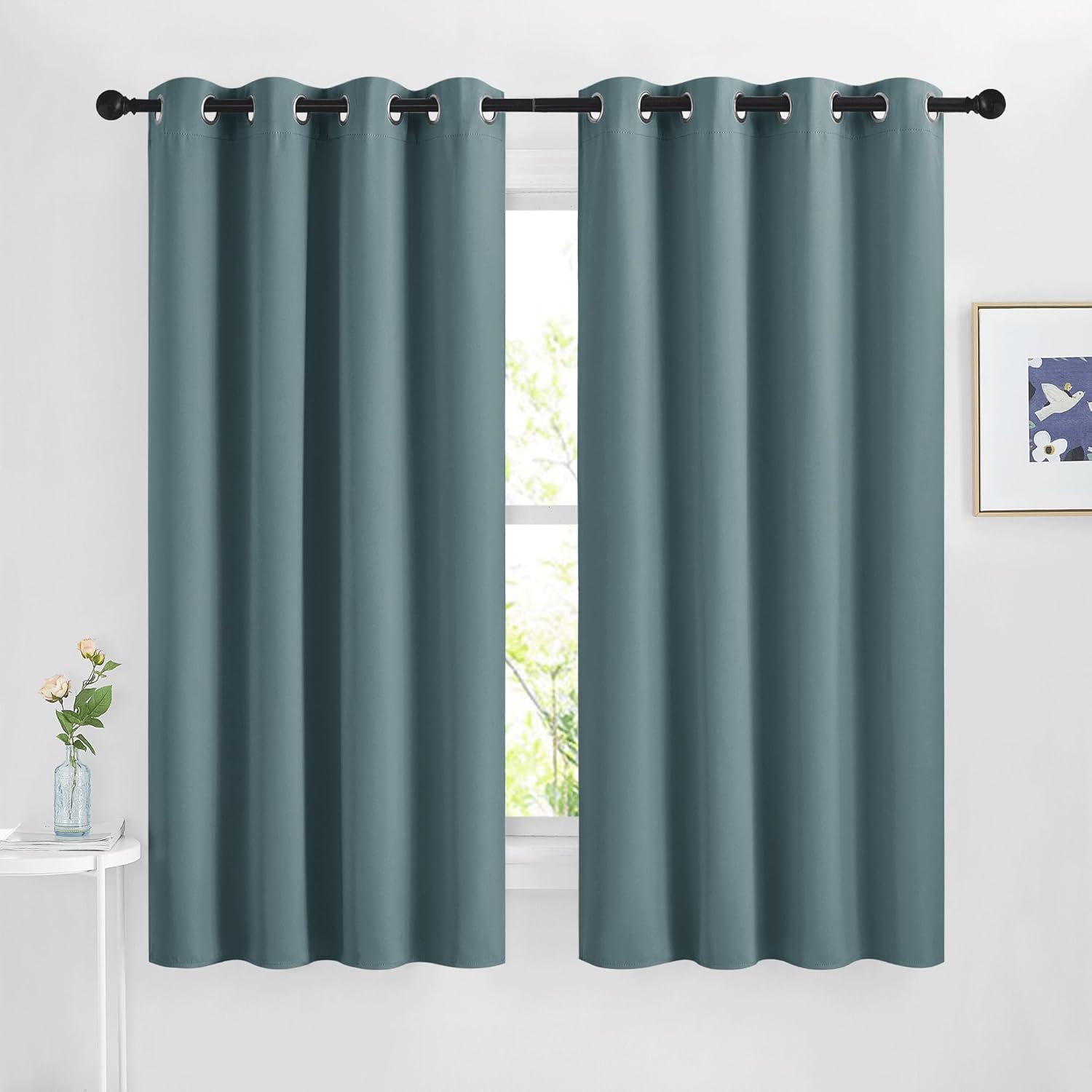 NICETOWN Greyish Blue Blackout Curtains 63 inches Long, Grommet Room Darkening Window Treatment Thermal Insulated Drapes Sound Reducing for Bedroom, W46 x L63, 2 Panels
