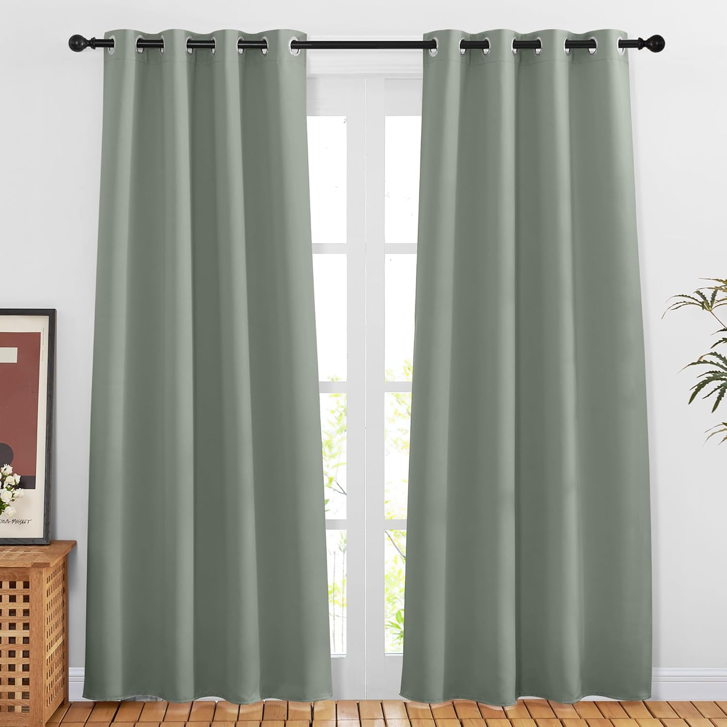 NICETOWN Sage Green 80 inch Doorway Curtains, Thermal Drapes Grommet Privacy Room Darkening Window Treatments Sound Reducing for Bedroom/Kids Room, Set of 2, W46 x L80