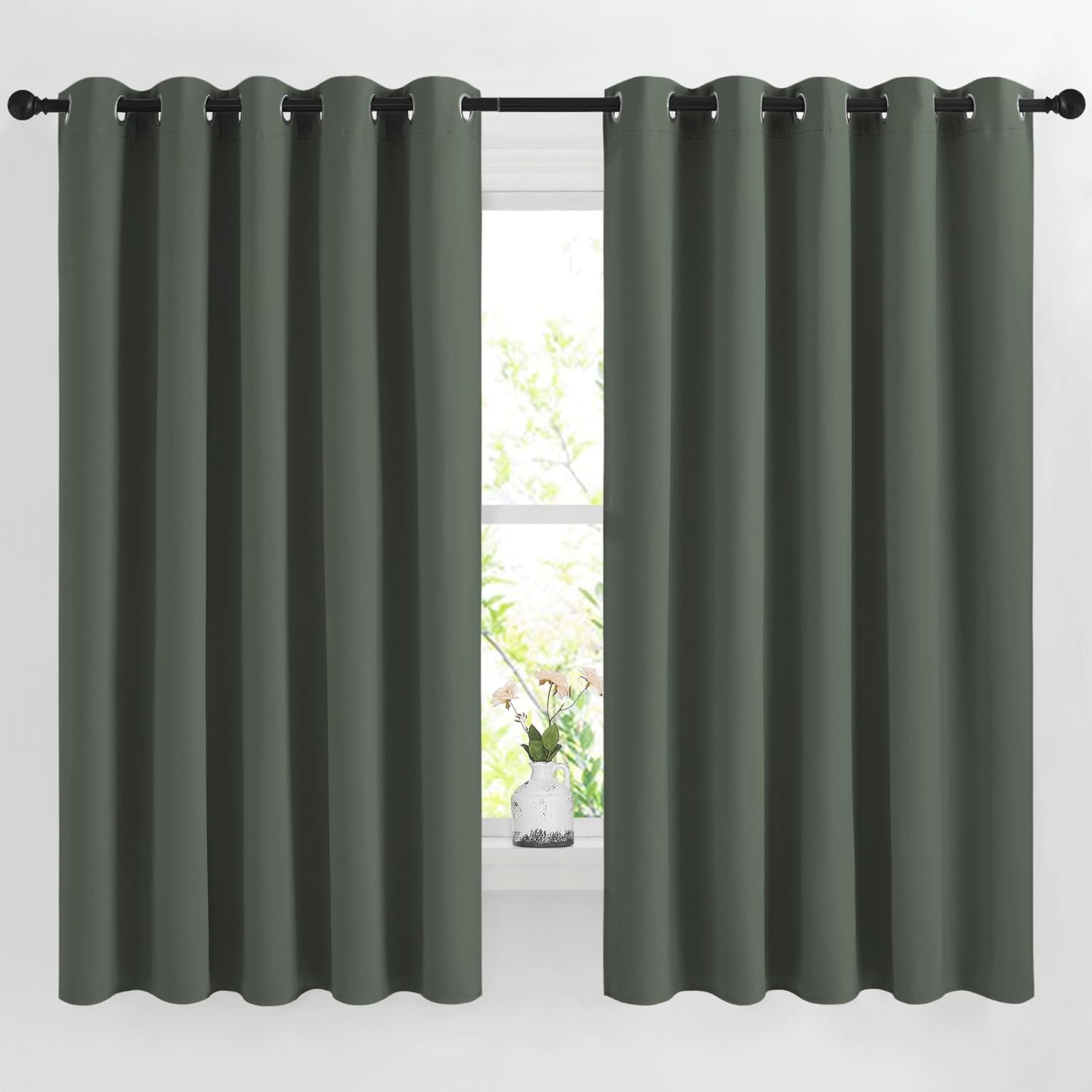NICETOWN Blackout Bedroom Curtains 66 inches Long, Grommet Light Reducing Thermal Window Treatments Solid Room Darkening for Living Room, Set of 2, W66 x L66, Dark Mallard