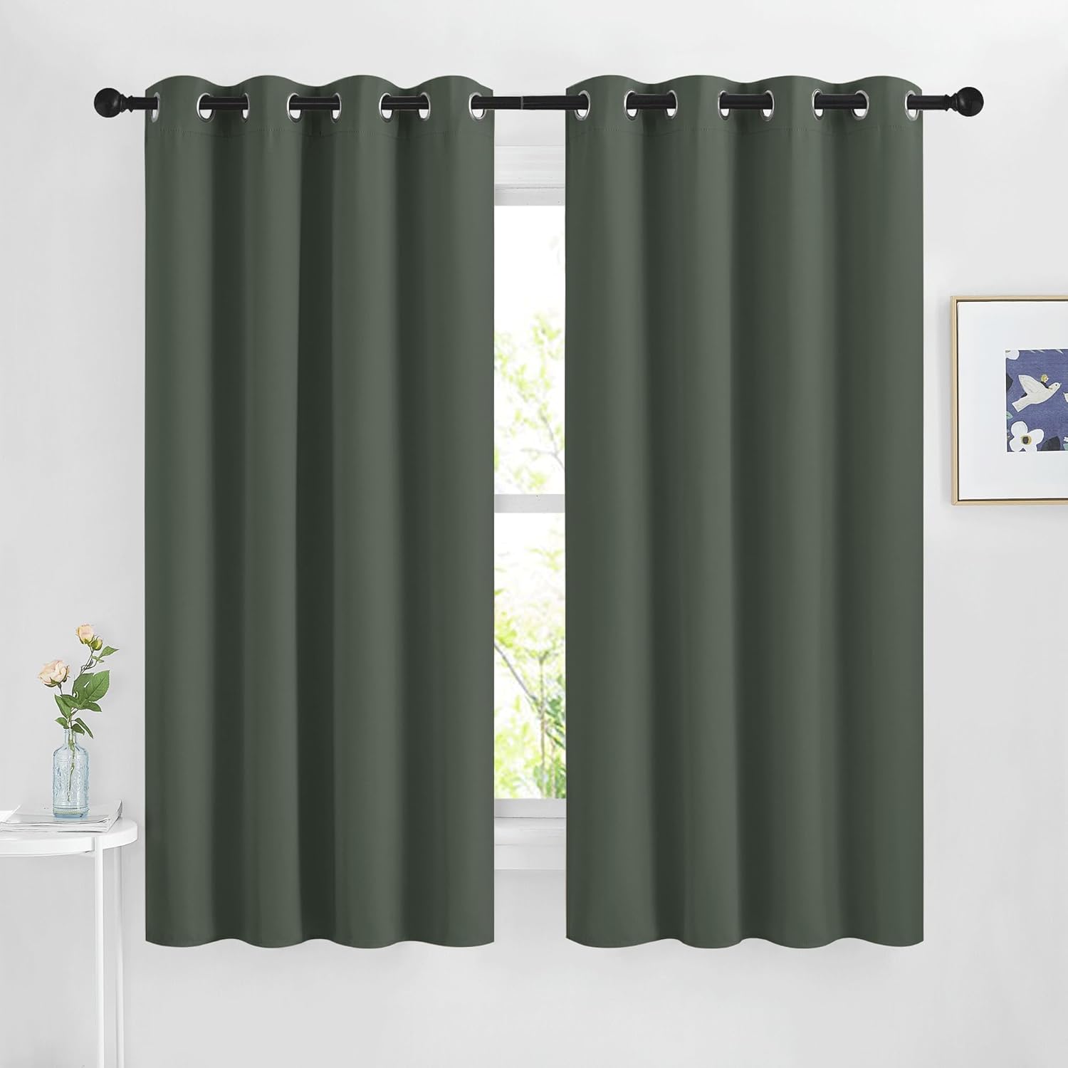 NICETOWN Blackout Curtains for Bedroom, Grommet Solid Thermal Drapes Light Blocking Window Treatments Sound Reducing for Living Room, Dark Mallard, W46 x L63, 2 Panels