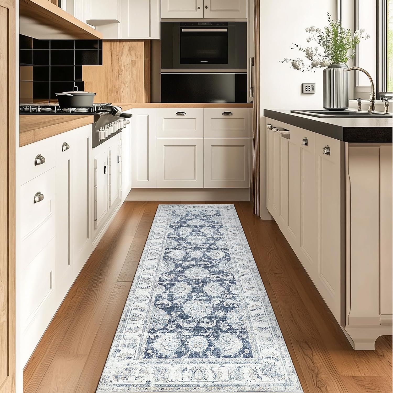 - Define Hallway & Narrow Space: Sleek and versatile, this runner adds subtle vintage elegance to long corridors, kitchen aisles, double vanity, or alongside beds. This low-profile rug stays in place while transforming narrow areas into practical, beautiful passageways.