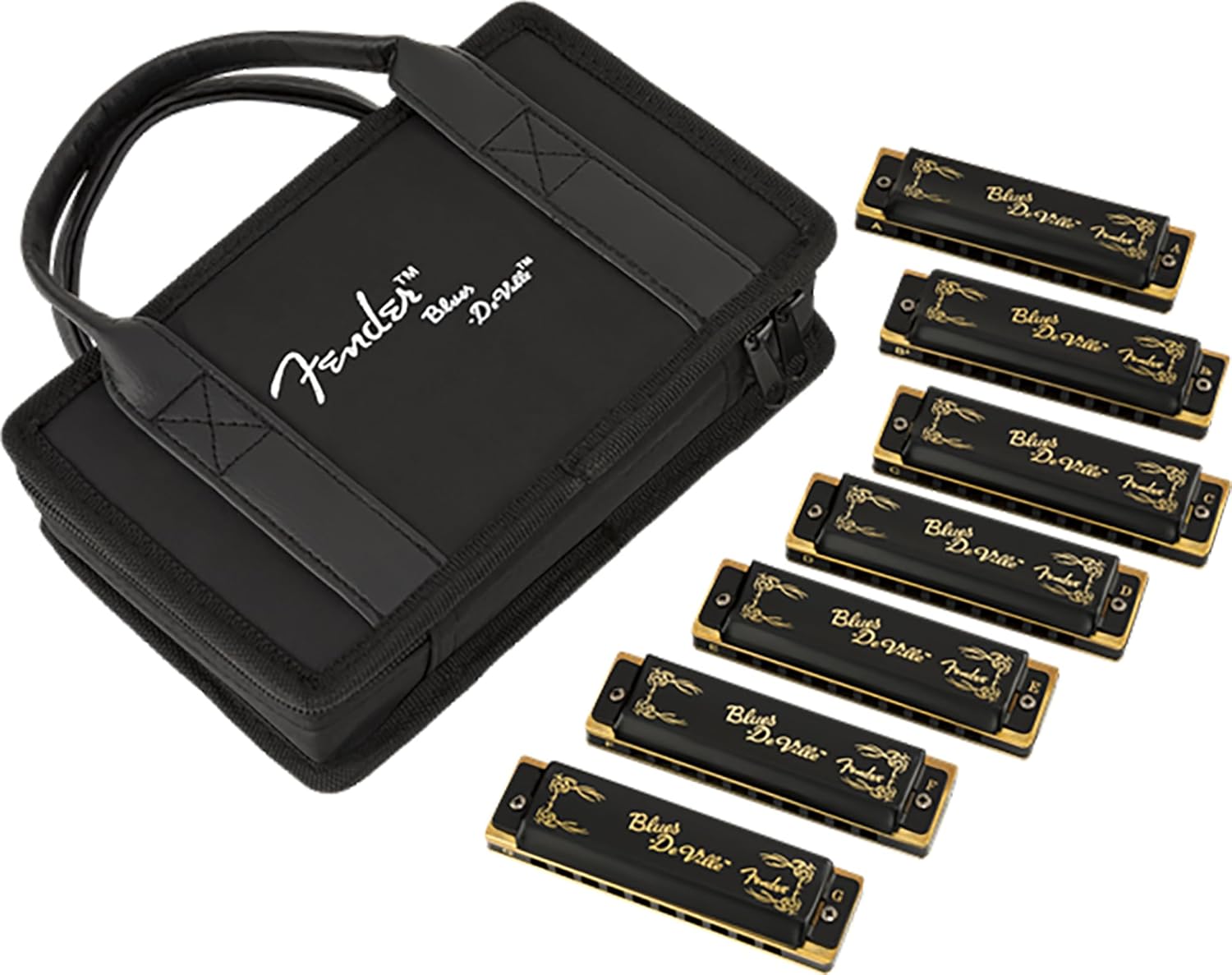 Fender Blues DeVille Harmonica - 7 Pack Bundle with Case, Austin Bazaar Instructional Manual, and Polishing Cloth