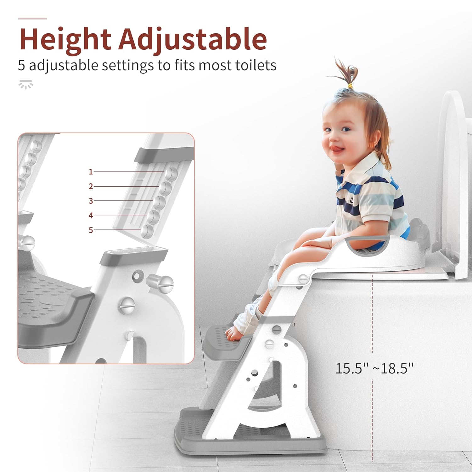 Potty Training Seat, Upgrade 2 in 1 Potty Training Toilet for Toddler, Toddler Toilet Seat for Boys Girls with Splash Guard, Anti-Slip Pad and Step Stool (Grey)