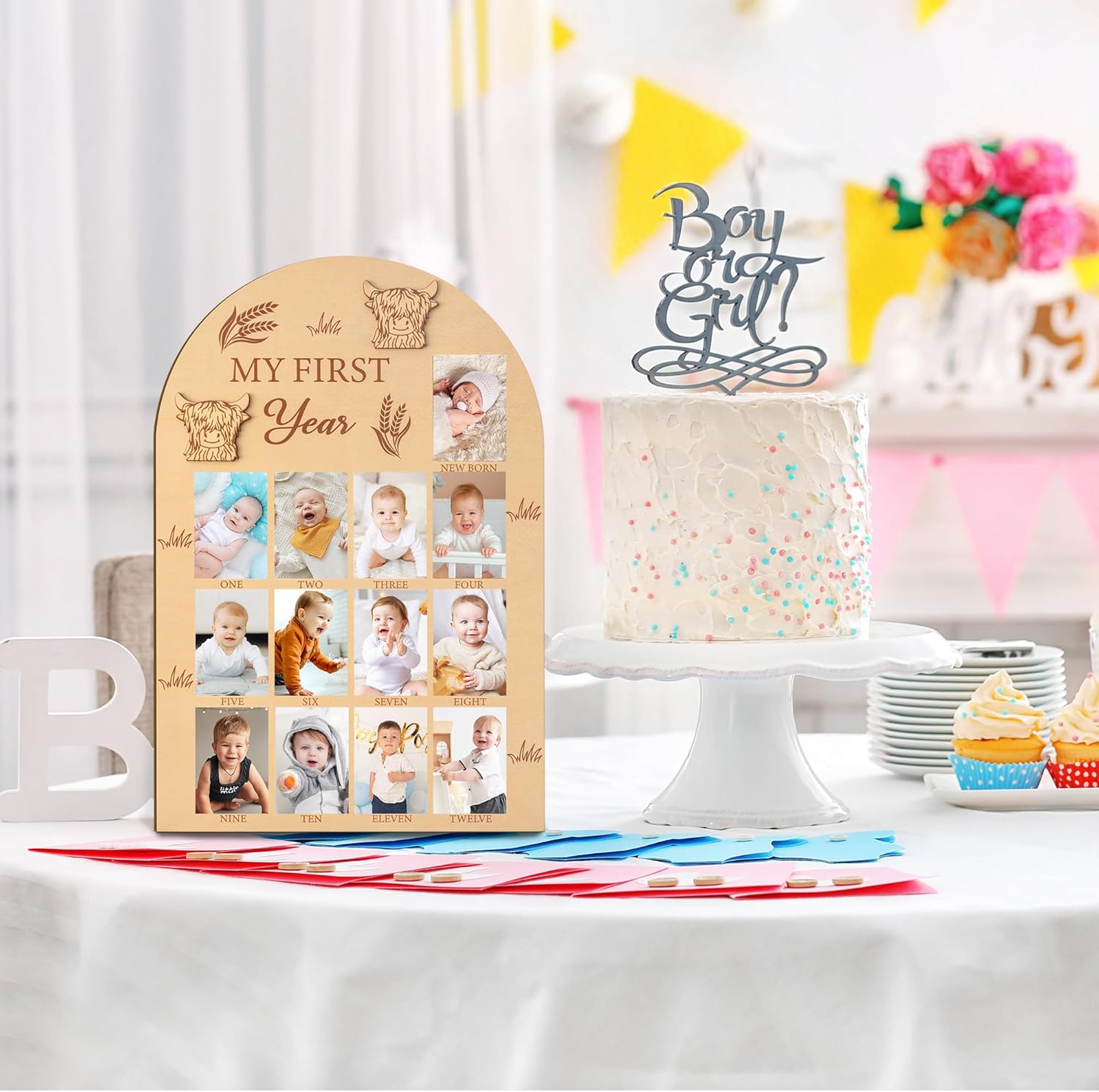- Thoughtful Gift: Give this baby photo wooden board to new parents as an ideal gift choice for a baby shower, baby boy girl first year party, birthday party, Christmas and various other occasions. Decorate your nursery or baby's birthday party with a priceless piece of their first year.