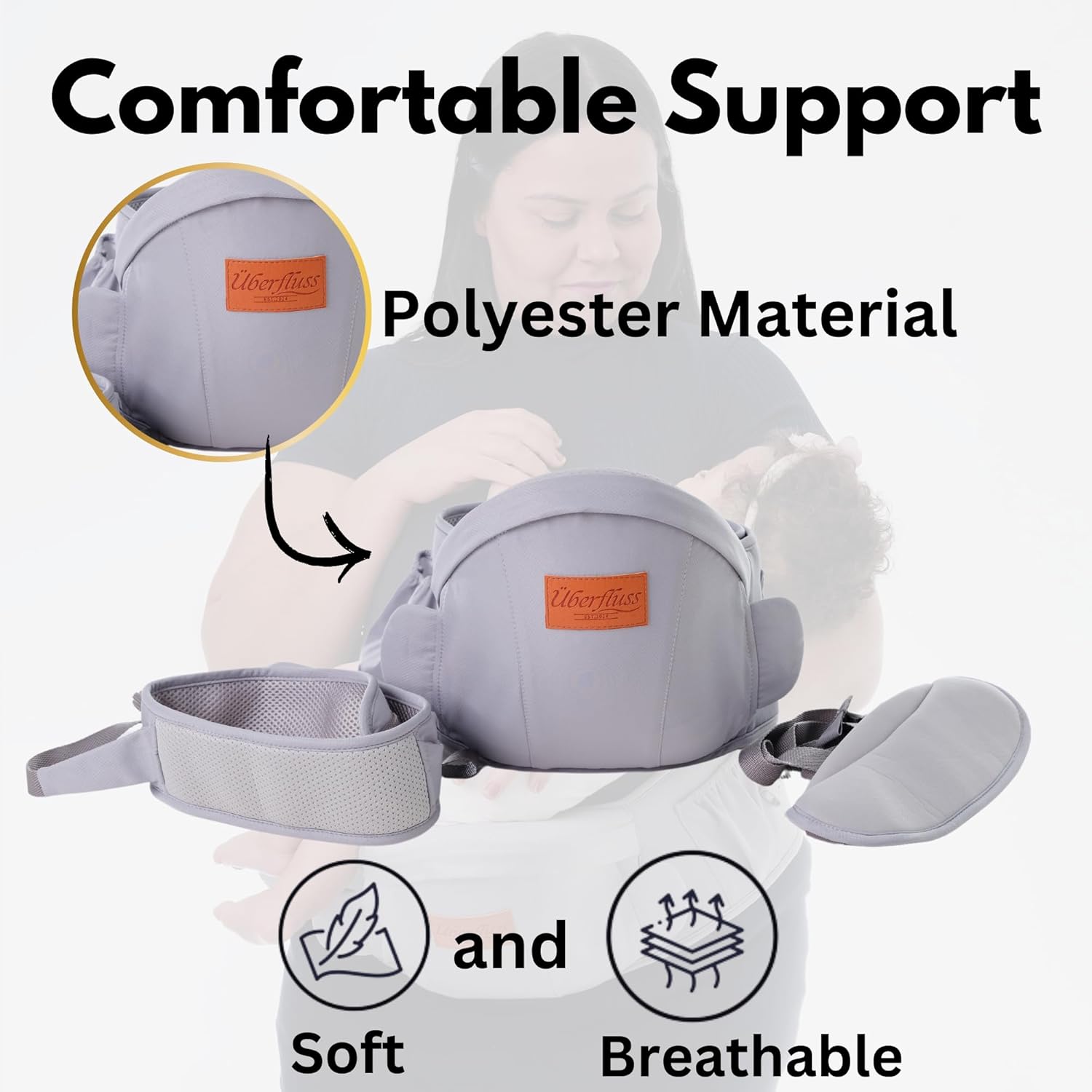 Baby Hip Carrier - Effortless Hands-Free Adjustable Fit Grey Baby Wraps Carrier for Newborns & Toddlers 8-45 lbs - Soft & Breathable Material with 4 Carrying Positions Multi-Pocket