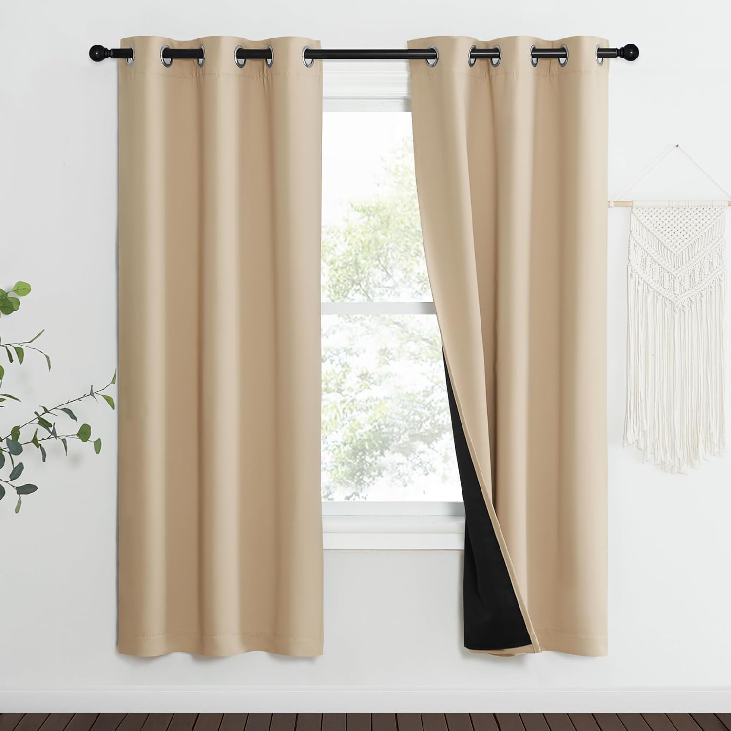 NICETOWN Living Room Completely Shaded Draperies, Set of 2, W37 x L70, Biscotti Beige, Privacy Protection & Noise Reducing Black Lined Insulated Window Treatment Curtain Panels for Patio Door