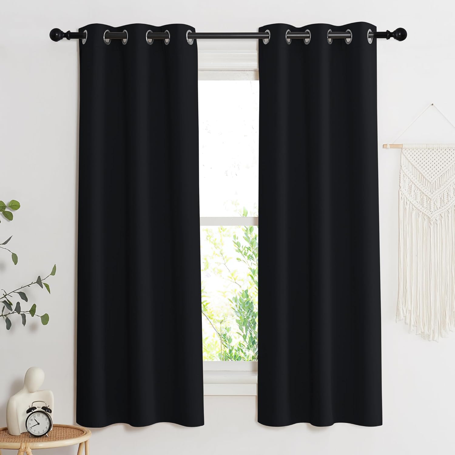 NICETOWN Complete 100% Blackout Curtain Set, Black, 37" W by 40" L, Double Panels, Thermal Insulated & Energy Efficiency Window Draperies with Black Liner, Noise Reducing Short Curtains for Kids Room