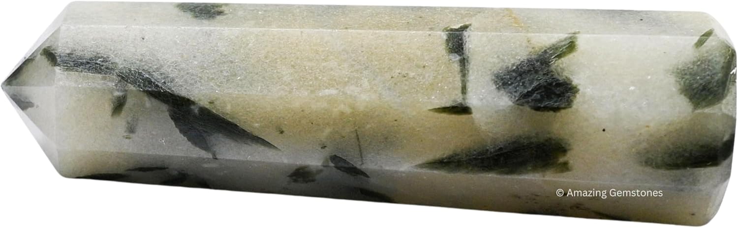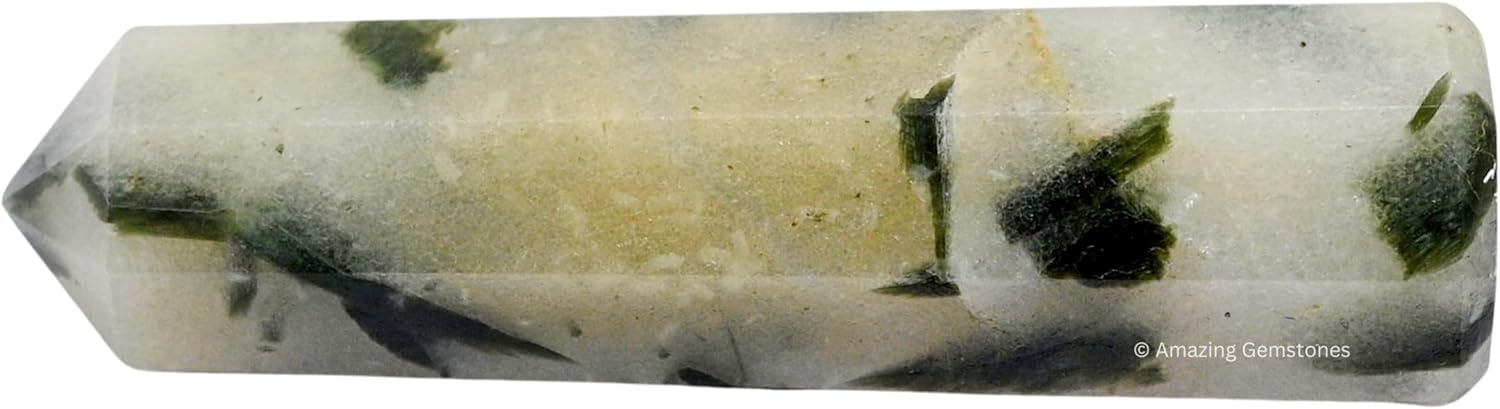 - Green Tourmaline in Quartz Crystal wand configuration enhances the metaphysical and healing properties of the source crystal. A crystal point is a powerful crystal tool. When placed facing away, the crystal point directs energy outward.