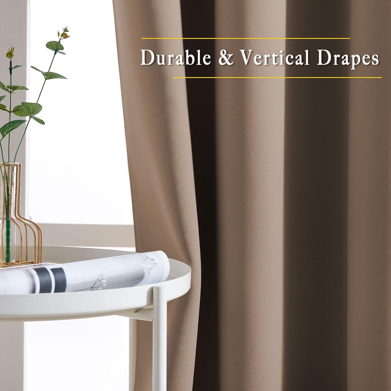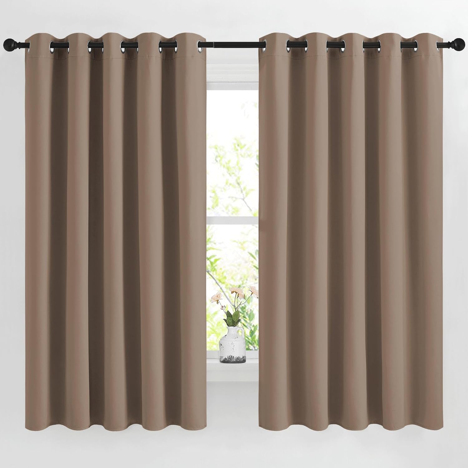 NICETOWN Blackout Bedroom Curtains 66 inches Long, Grommet Room Darkening Thermal Insulated Window Treatments for Home Office/Kids Room, Cappuccino, 2 Panels, W66 x L66