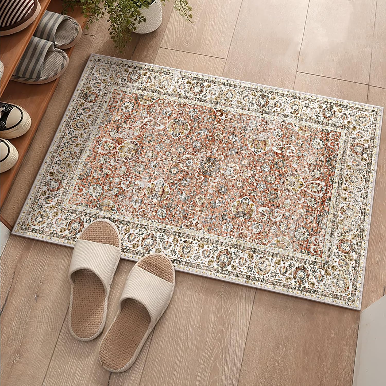 Deerly 2x3 Entry Rugs Small Area Rugs for Bedroom Living Room Bathroom Kitchen, Small Soft Rugs Low Pile Non-Slip Rubber Backing Oriental Door Mat, Brick Red
