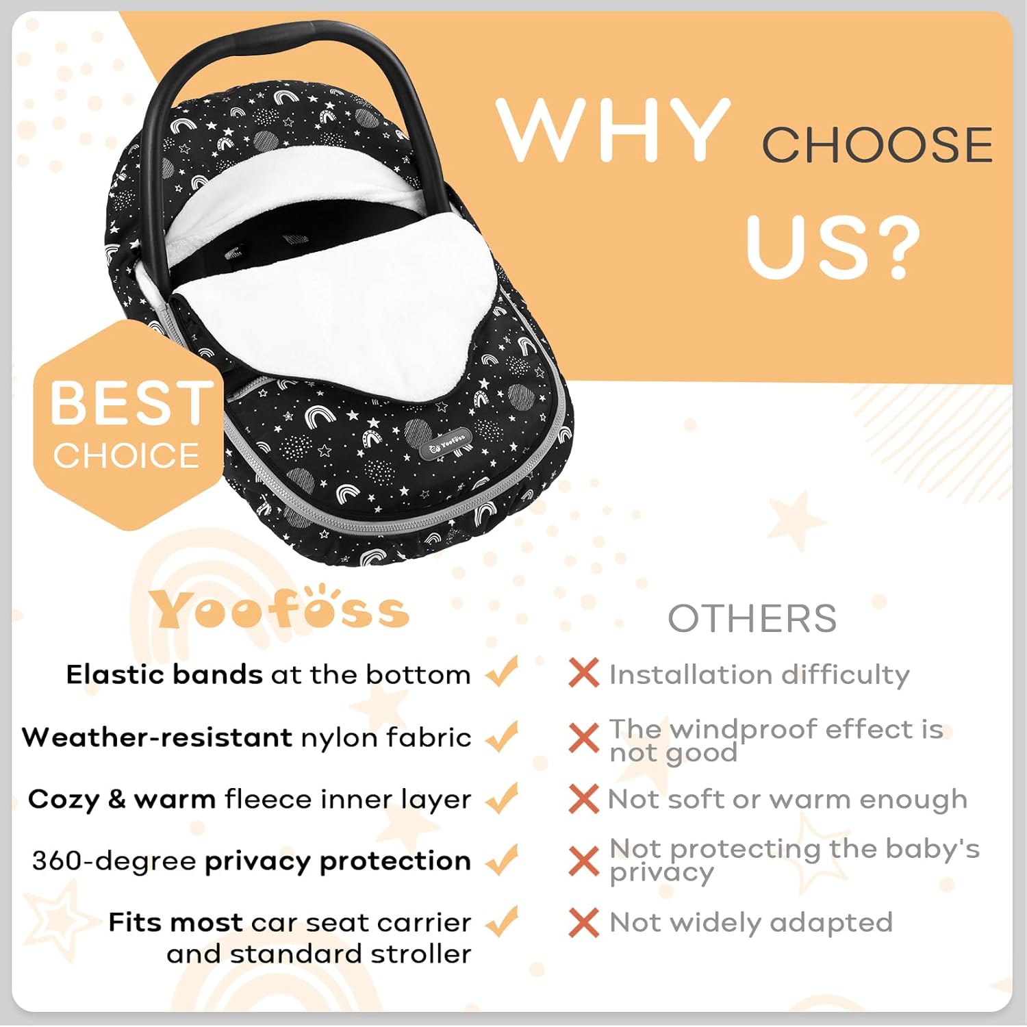 - Safe and Universal Fit : The winter car seat cover for babies features with elastic bands at the bottom, it fits car seat carrier and standard stroller well, protect your baby from the elements and chilly weather. It doesn't interfere with the proper harnessing of the child or the functionality of the car seat's safety features.