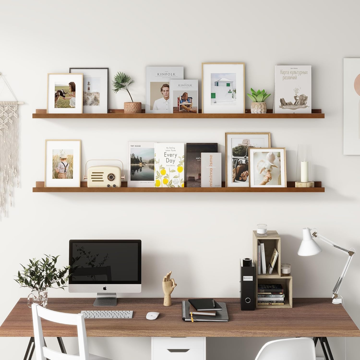 Picture Ledge Shelf, Floating Shelves Set of 2, Solid Pine Wood 72'' Long Large Nursery Book Shelves for Toys Storage, Kids Bookshelf for Living Room Bedroom Decor Books Photo Frames, Walnut