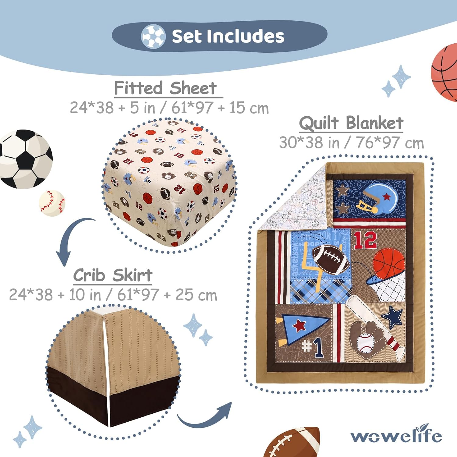 - Perfect Gift: This baseball 3 pieces crib comforter set for boys makes the perfect gift for babies shower for your baby, new mom, relatives, friends or new parents