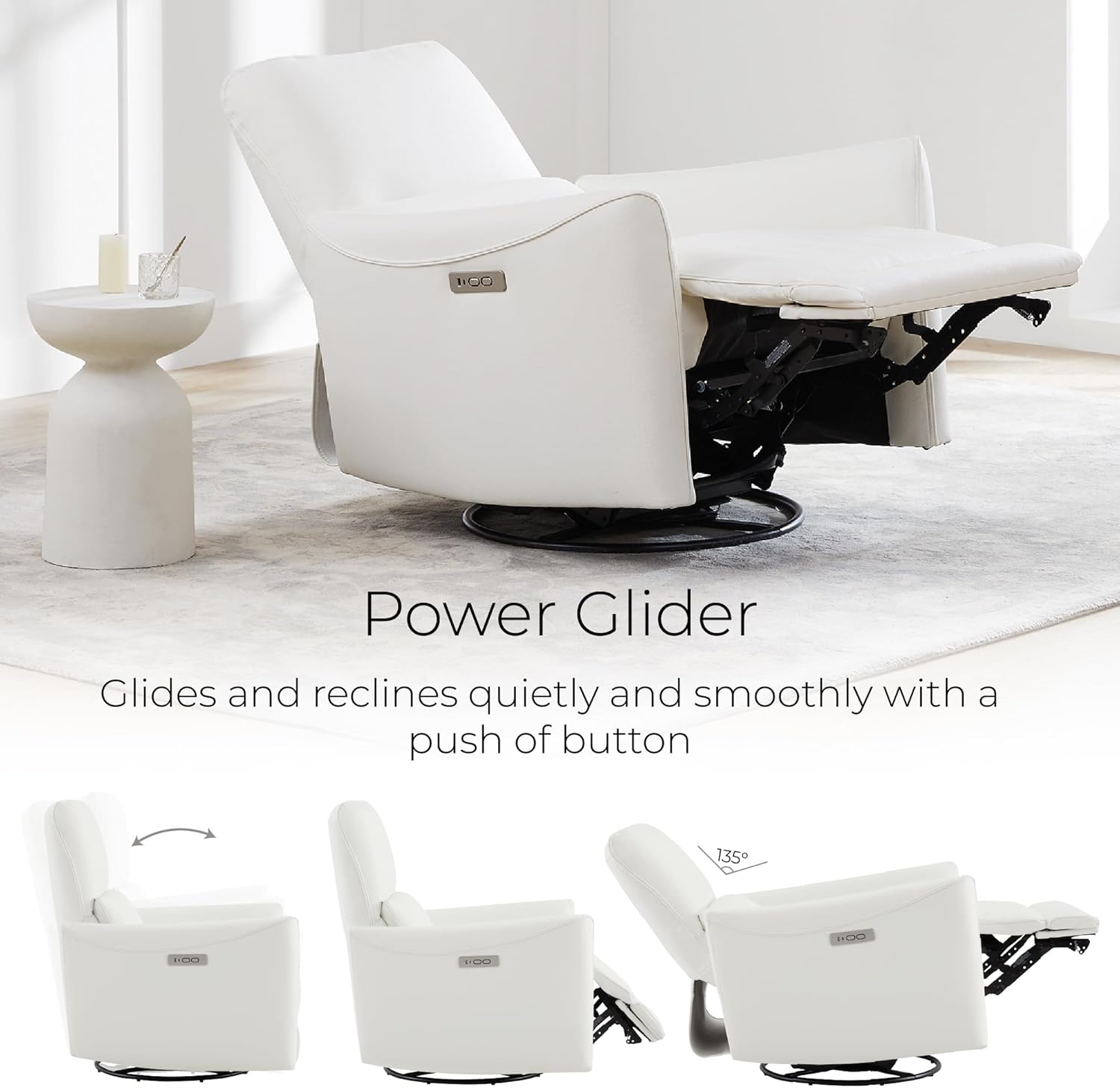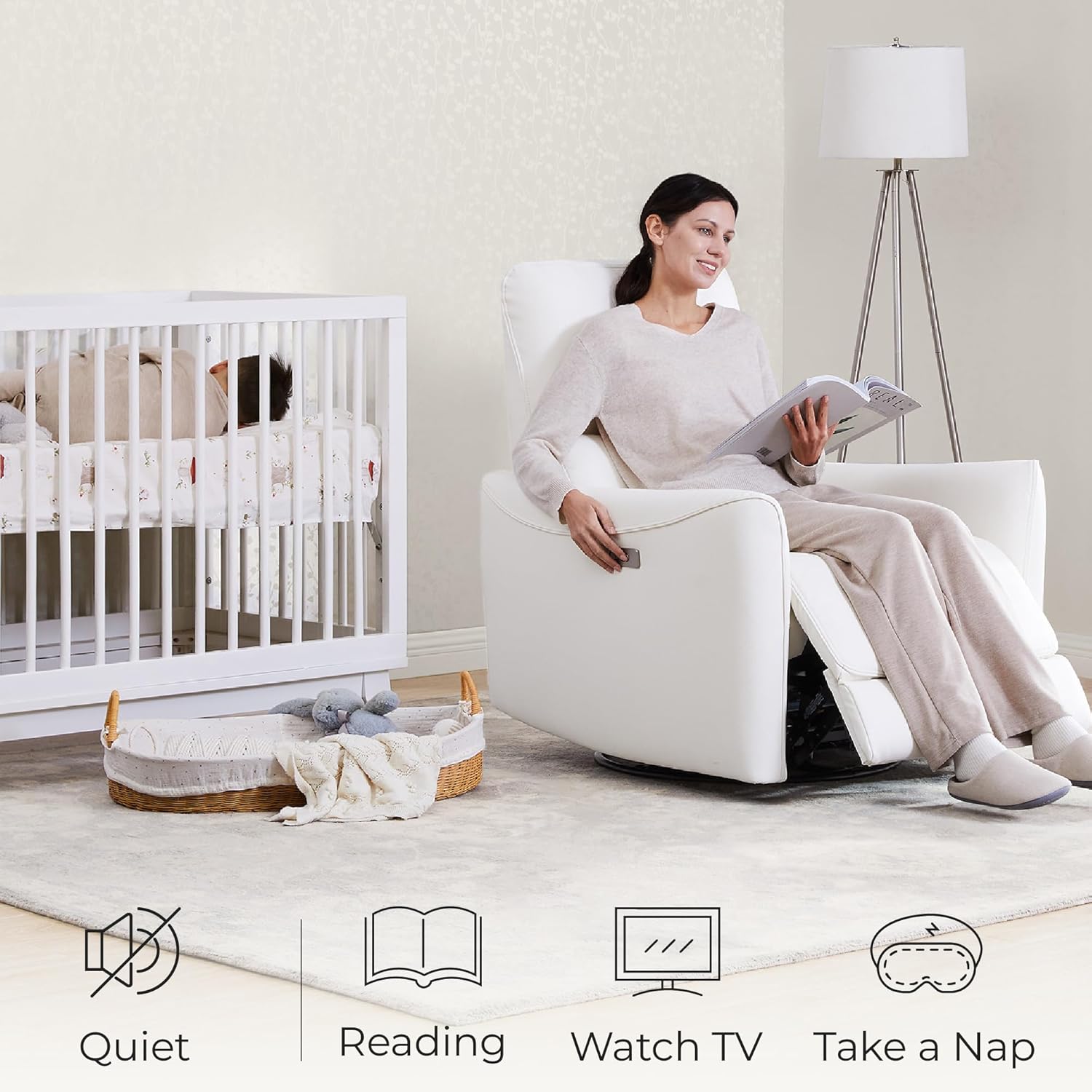 CHITA Power Recliner Chair Swivel Glider, FSC Certified Upholstered Faux Leather Living Room Nursery Reclining Sofa Chair with Lumbar Support, White