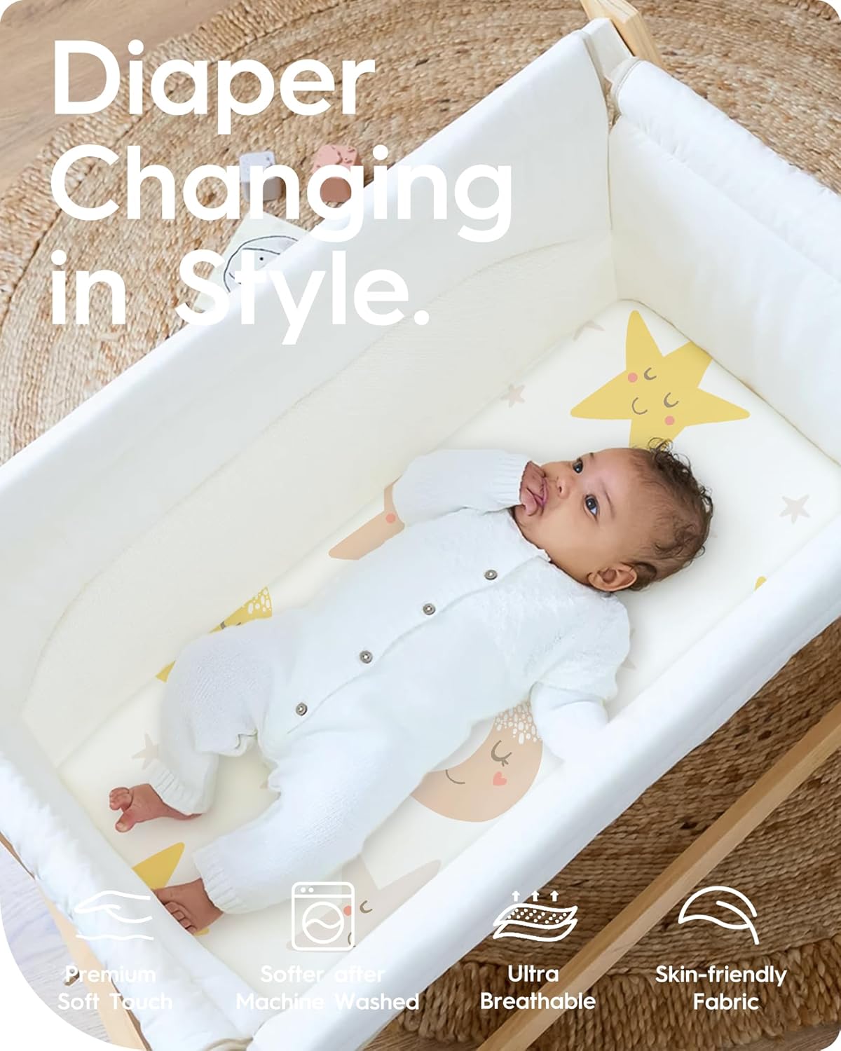 - ULTRA-SOFT AND HIGH QUALITY: Our changing table cover are made with 100% high-quality rayon knit cotton, making them ultra-soft, hypoallergenic, and breathable. This creates a safe and comfortable sleeping environment for your little one, helping them sleep longer and more peacefully.