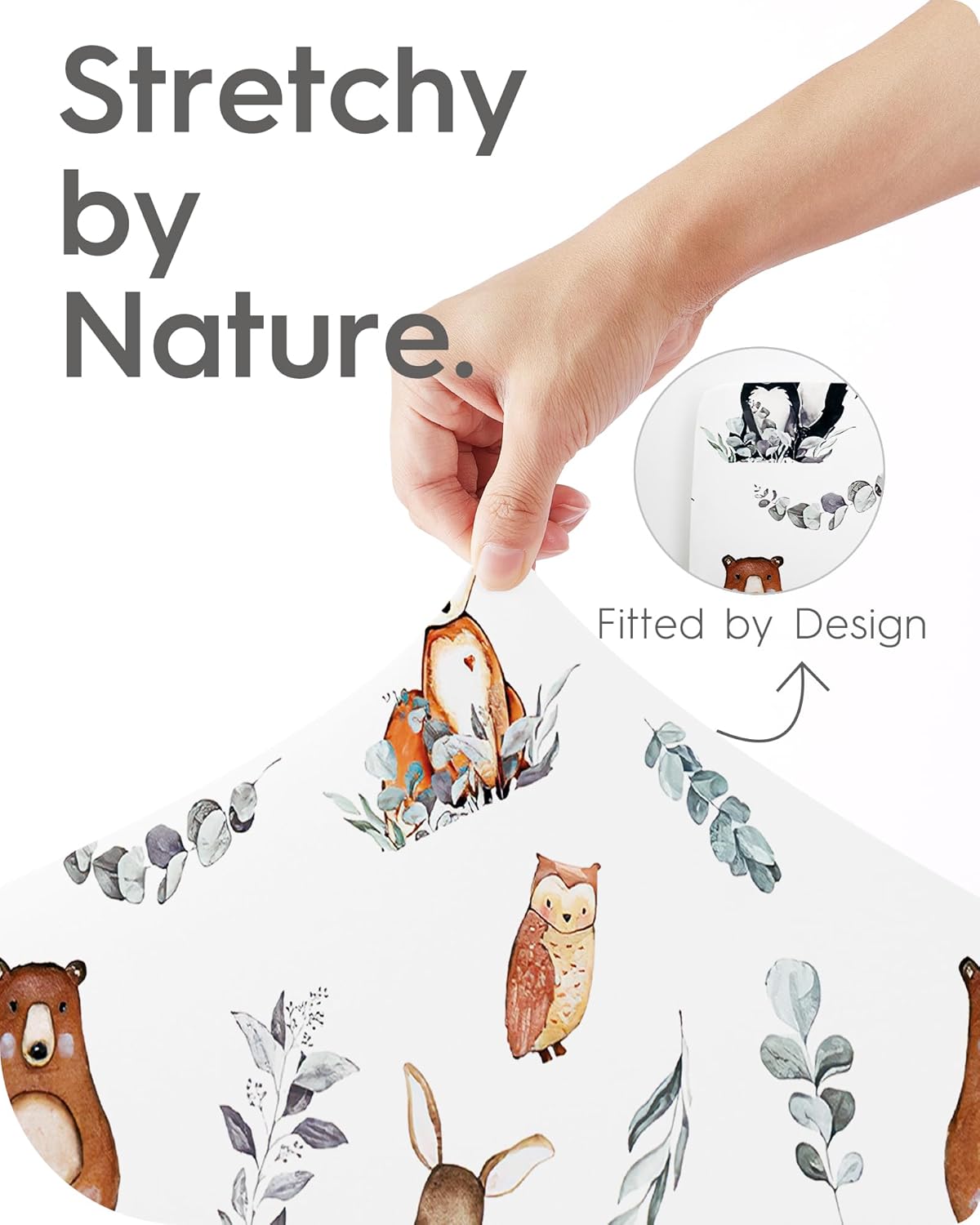 Pack N Play Sheets Fitted, TotBasic Ultra Soft Animal Mini Crib Sheets, Premium Jersey Knit Pack and Play Sheets Neutral, Stretchy Play Yard Sheets for Pack and Play Mattress, 2 Pack (Bear and Dear)