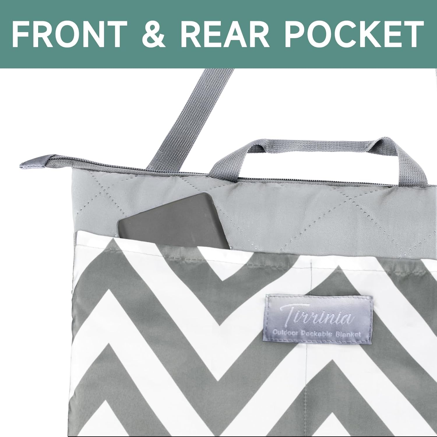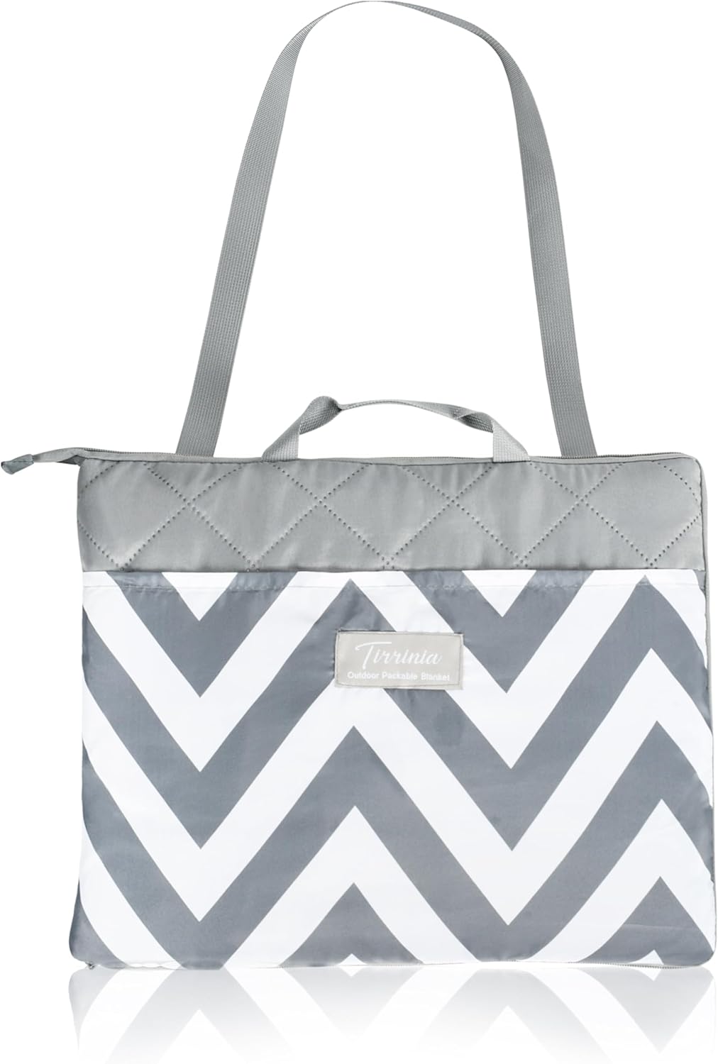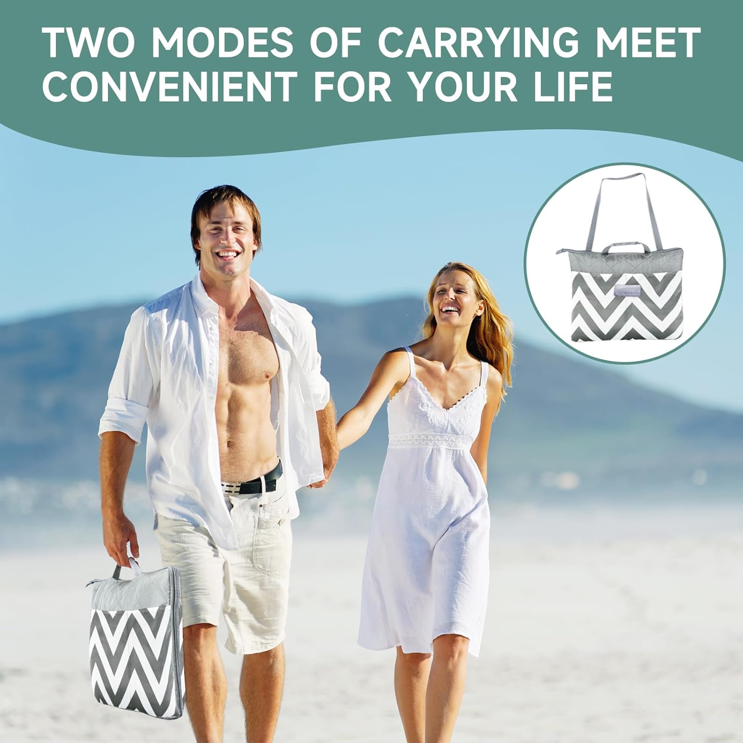 Waterproof Picnic Blanket, Lightweight 50” x 60” Foldable Sandproof Beach Blanket with Large Pocket, Portable Outdoor Camping Blanket Great Couples Gift Ideas, Gray Wavy